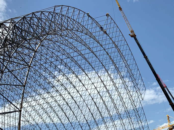 (2)网架加工前应对现场尺寸进行复测,确认无误后方可进行加工、安装;网架制作、运输、安装应遵守《空间网格结构技术规程》JGJ7-2010、《钢网架叶城螺栓球节点》JG/T 10-2009、《钢网架叶城螺栓球节点用高强度螺栓》 GB/T 16939-2016、《叶城钢结构叶城工程叶城施工规范》 GB50755-2012、《叶城钢结构叶城工程施工质量验收标准》 GB50205-2020。